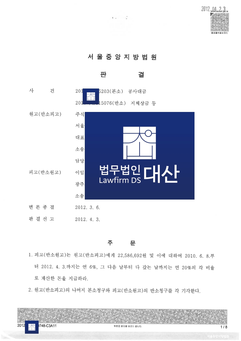 피고(반소원고)는 원고(반소피고)에게 22,586,692원 및 이에 대하여 2010.6.8.부터 2012.4.3.까지는 연 6%, 그 다음 날부터 다 갚는 날까지는 연 20%의 각 비율로 계산한 돈을 지급하라.